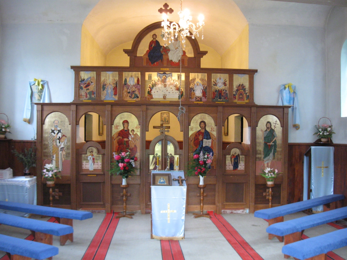 The church is cruciform, and at the intersection of themain nave and transept rises onion-shaped dome on an octagonal tambour. Above the rectangular entrance there issimplecanopysupported by two circular pillars covered with a simple gabled roof. Initially, the canopy was flat, and above, on the gable wall, there were two arched windows. The roof above the nave and the canopyiscovered with modern clay tiles, while the dome is covered with sheetsof galvanised metal.Façades are flat, plastered with absolute absence of decorations. The interior:main nave and transept, and the altar apse are vaulted with barrel-shaped vault. The altar area is separated withatall wooden altar screen of simple workmanship.On the eastern side of the church is a simple opened campanile, completed with a recently constructed pyramidal roof.